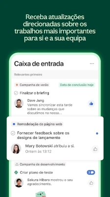A colaboração contínua é um pilar da experiência Asana. Mantenha-se conectado com colegas, trocando ideias através de comentários, anexando arquivos relevantes e recebendo atualizações automáticas na sua Caixa de Entrada sobre o que realmente importa. Para uma visão estratégica completa, Asana estende suas capacidades com funcionalidades avançadas na interface web, como Portfólios para monitorar o progresso de múltiplos projetos simultaneamente, Campos Personalizados para capturar detalhes específicos de tarefas, visualizações de Cronograma que revelam dependências em formato Gantt e a gestão de Metas para acompanhar os objetivos maiores da organização.