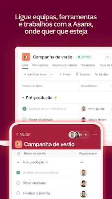 No ritmo dinâmico do trabalho moderno, a capacidade de coordenar equipes e gerir projetos de forma eficaz, onde quer que você esteja, é crucial. Asana oferece uma plataforma unificada que transcende as barreiras físicas, assegurando que você e sua equipe permaneçam perfeitamente alinhados. Acesse suas tarefas e objetivos tanto em dispositivos móveis quanto via navegador, garantindo que o progresso e a colaboração nunca sejam interrompidos, mantendo o foco em cada objetivo.
