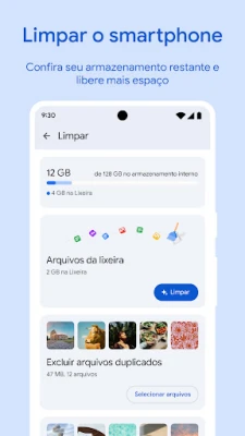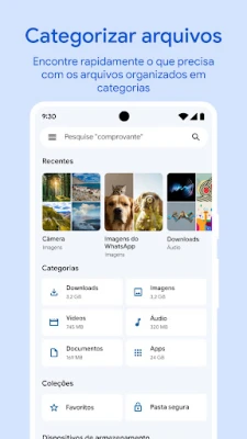 Desfrute de uma experiência digital organizada e sem preocupações com o Files do Google. Diga adeus ao caos de arquivos e à lentidão do seu dispositivo. Nossa ferramenta inteligente simplifica a localização de fotos, vídeos e documentos, permitindo que você navegue e encontre o que precisa em segundos. O Files do Google escaneia e identifica prontamente itens que ocupam espaço desnecessário, como arquivos duplicados, cache de aplicativos e fotos antigas de chats, oferecendo sugestões claras para liberar gigabytes preciosos e otimizar seu armazenamento.