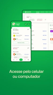 Desvende o poder da gestão financeira inteligente com Organizze, a plataforma definitiva para transformar sua relação com o dinheiro. Oferecendo uma visão completa e em tempo real, Organizze proporciona a tranquilidade de ter suas finanças sob total domínio, de forma prática e segura. Seja no conforto do seu computador ou na palma da sua mão com o celular, unifique o controle de suas carteiras, faturas de cartão de crédito e todas as suas contas bancárias em um sistema intuitivo, elegante e descomplicado.