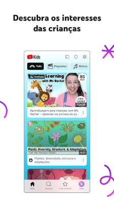 O YouTube Kids é o ambiente seguro onde as crianças exploram conteúdos que adoram, estimulando a curiosidade e a imaginação. Pais podem personalizar perfis e filtrar o conteúdo, garantindo uma experiência confiável e educativa. Ajude seus filhos a descobrir novos interesses e a desenvolverem-se ao próprio ritmo com ferramentas simples e intuitivas.
